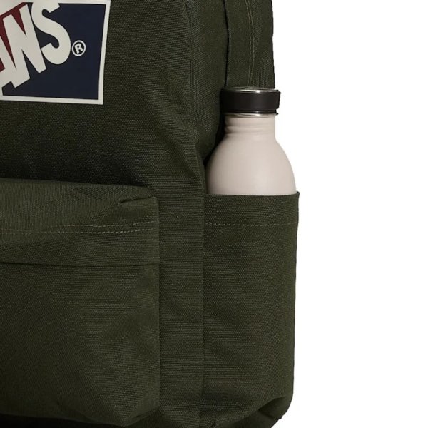 A Mochila Vans Old Skool Grom Dried Kelp conta com amplo compartimento central,compartimento frontal para melhor organizar os objetos do dia a dia e bolso lateral.