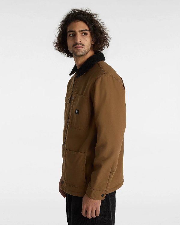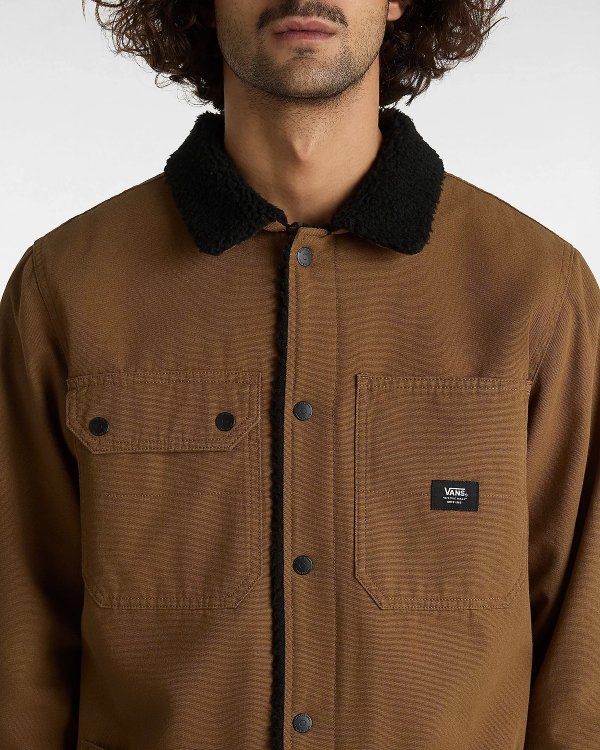 Uma peça inspirada em roupa de trabalho com uma atualização moderna, o casaco Drill Chore Sherpa tem o valor utilitário de um casaco chore com forro sherpa para garantir que ficas quente ao usá-lo.
