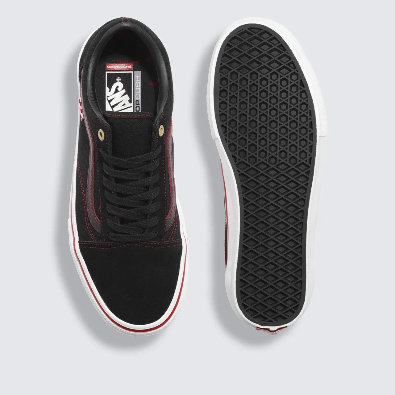 Com silhueta icônica no cabedal de camurça e lona, o Tênis Skate Old Skool Vi Kakinho Black Red mantém a estética do Old Skool™ original que você já conhece, atualizado com todos os benefícios de desempenho que os skatistas exigem.
